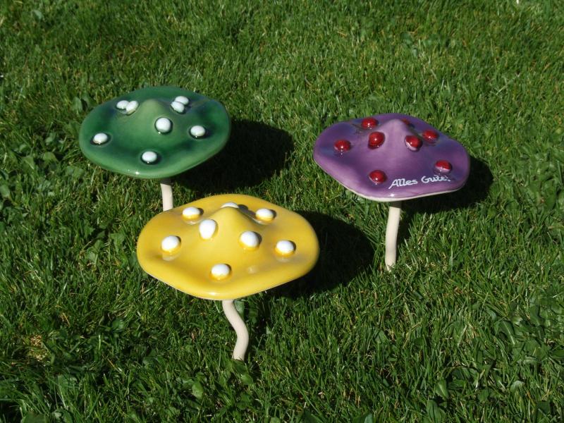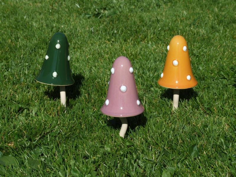 Keramikpilz mit Keramikstiel in verschiedenen Farben aus EU-Handarbeit - deshalb sieht kein Pilz aus wie der andere (alles Unikate)