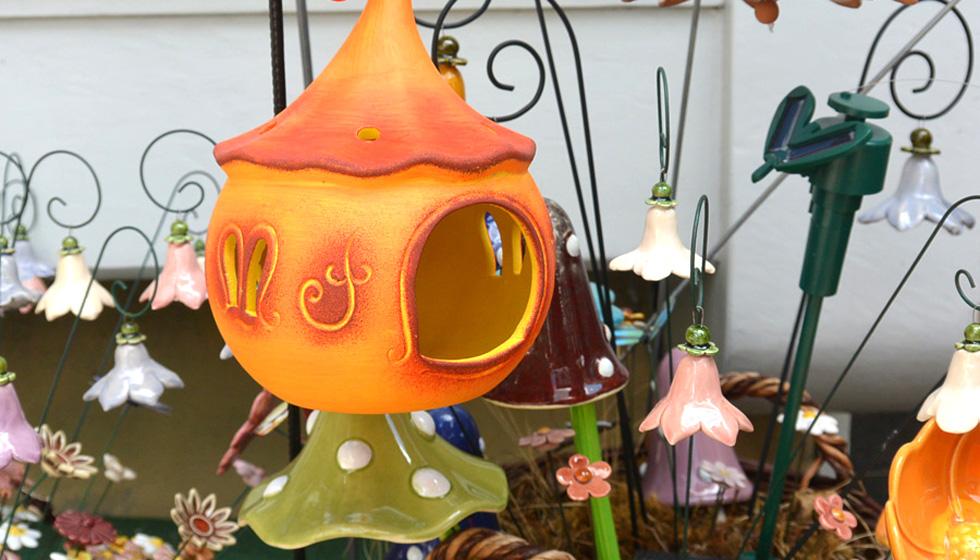 Dekoblumen für den Garten, Vogelhäuschen, Windlichter, Deko-Vögel uvm.